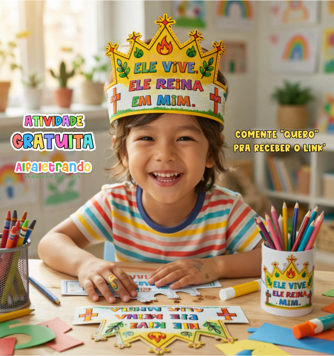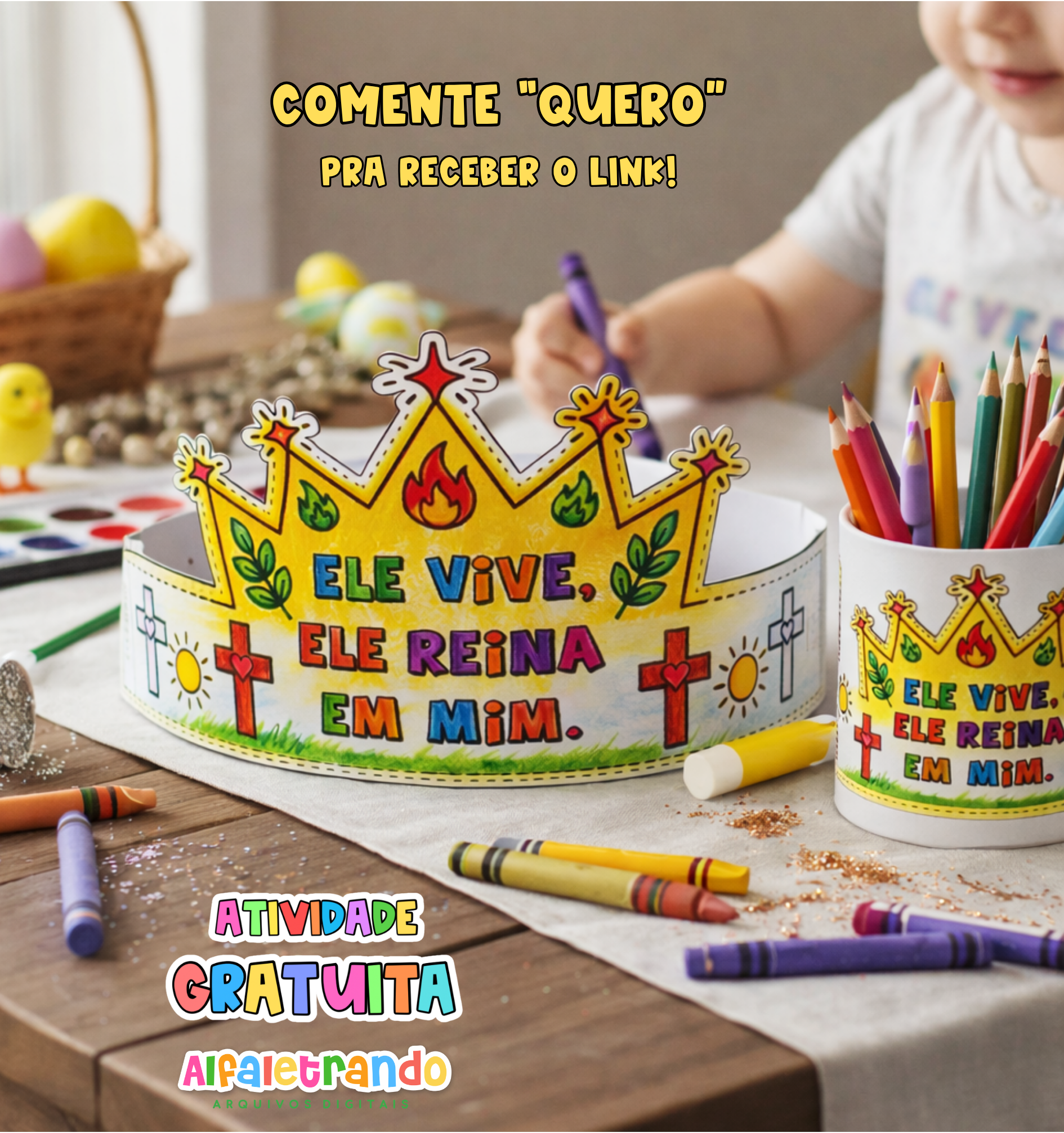 Uma linda coroa para colorir no dia da Páscoa, mostrando para a criança o verdadeiro significado desta data tão importante com ludicidade.